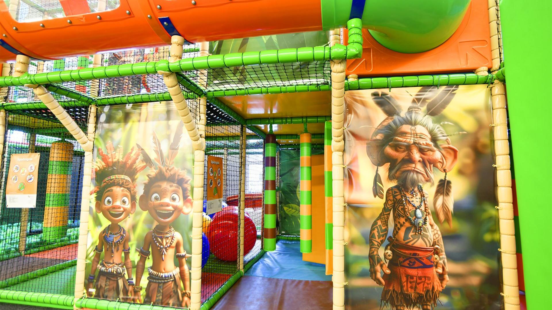 • Bewegung & Abenteuer: Kinder können sich auf Klettergerüsten, Rutschen, Soccercourt oder Trampolin so richtig austoben.