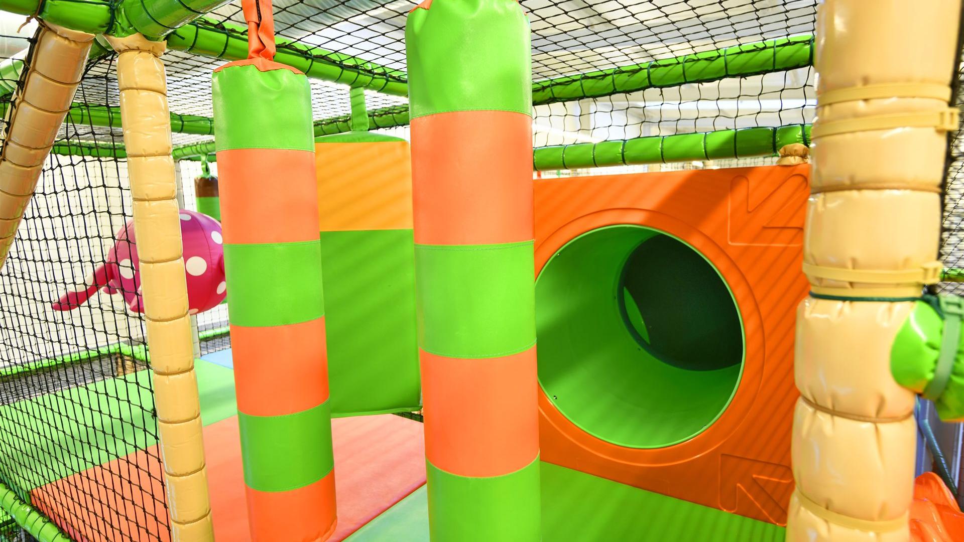 • Bewegung & Abenteuer: Kinder können sich auf Klettergerüsten, Rutschen, Soccercourt oder Trampolin so richtig austoben.